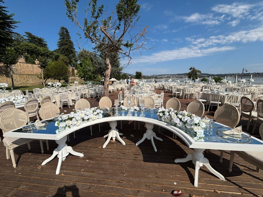 Bahçede nikah törenlerinde görsel bütünlük çok önemlidir. Nikah masası, yürüyüş yolu, arka fon, çiçek uygulamaları ve oturma düzeni aynı konsept içinde hazırlanmalıdır. Sade ama uyumlu bir dekorasyon, açık hava nikahlarında her zaman daha zarif ve profesyonel görünür.